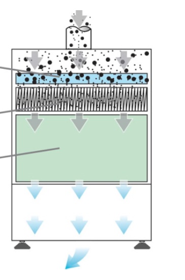 filtračnú jednotku malých rozmerov s primeraným odsávacím výkonom s technológiou skladaných a kombinovaných filtrov, nízkou hladinou hluku a s ukazovateľom stavu filtra.